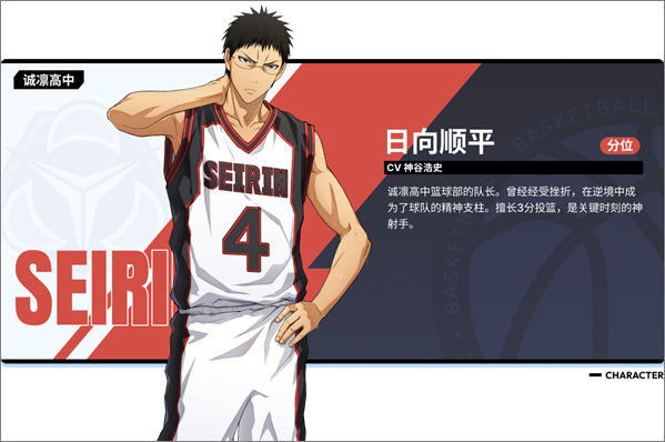 "奇迹的世代"成员之一。极具威胁的3分射手,整个球场都是其射篮范围。因为何事都要尽人事的性格,总是随身携带着幸运物。