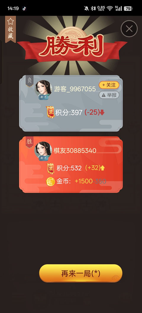 3、游戏设有完善的等级系统,玩家可以通过赢取积分来提高自己的棋力等级,体现专业竞技水平。