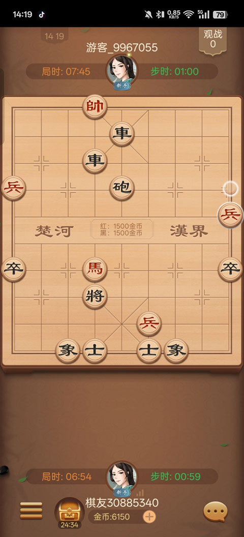 2、然后开始匹配,确定完金币的赌注就可以开始下棋了。
