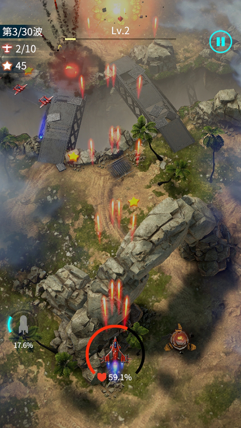 硬科幻美术风格,丰富多变的海陆空战场,紧张刺激的战斗音效,华丽酷炫的弹幕特效,为你打造震撼的飞行射击体验!