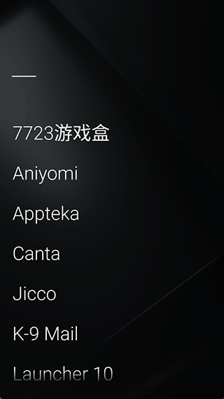 3、比如操作第一个时,就可以打开你手机中的所有应用列表了,并且按照字母、拼音顺序进行排列
