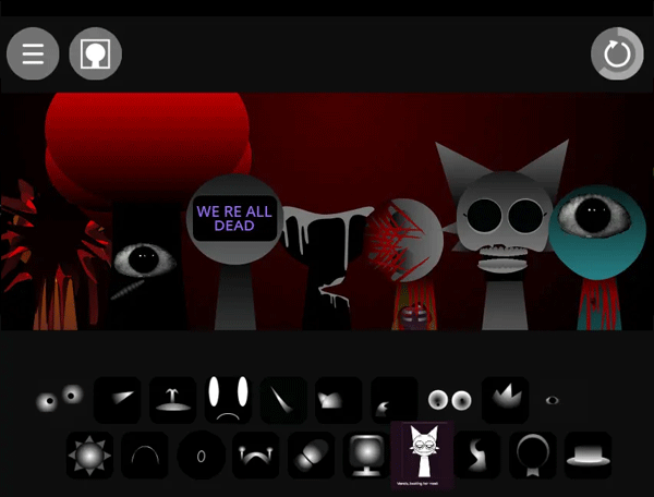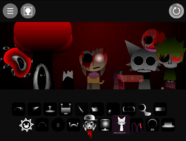 节奏盒子第五阶段(sprunki phase5)官方正版是一款独具特色的音乐节奏游戏,也是sprunki模组恐怖模式中的第五个阶段,此版本中加入了五个不同阶段的音乐模组玩法,在这里玩家需要在游戏中拖动相应的表情和符号,从而触发不同的演奏阶段,每个阶段中的音乐风格大不相同,卡通的人物形象也会发生改变,玩家可以自由演奏各种乐曲,享受紧张刺激的游戏体验。另外,节奏盒子sprunki第五阶段模组游戏关卡的音乐较为尖锐,玩家可以根据自身情况调整声音大小。主要任务是按照特定顺序为中间的小人选择不同的装扮,然后为周围的小人搭配上合适的装扮,最终将小人的装扮调整到特定状态,才能顺利进入下一阶段,有兴趣的朋友快来下载体验吧。