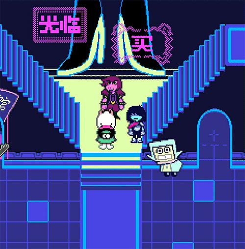 接下来就是我们的最终boos,——Spamton。这个就是之前待在垃圾桶中的神秘人,他趁玩家打冰封线的乱子去城堡的地下室偷取武器,然后成为了赛博世界的新统治者,便阻止玩家关掉黑暗喷泉