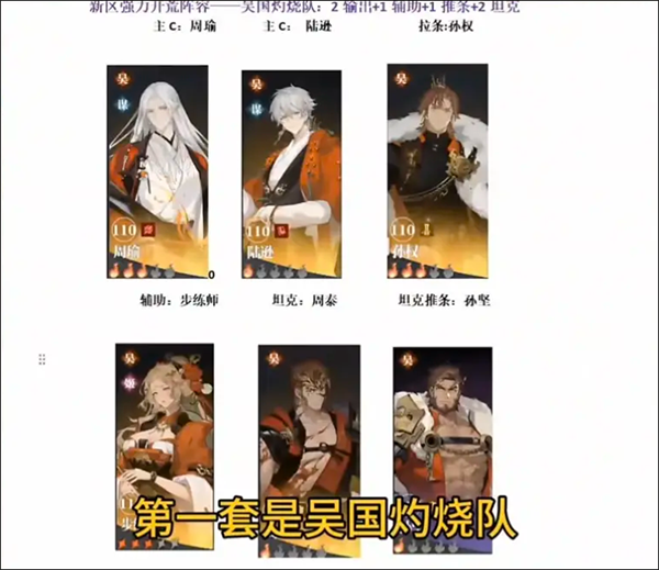 -陆逊:与周瑜的灼烧效果相互配合,能对已处于灼烧状态的敌人造成额外伤害,进一步增强灼烧流的输出能力。