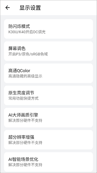 3、比如一些玩游戏的用户需要高清画质的,可以在显示设置中对一些隐藏的屏幕画质进行设置