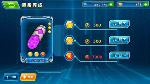第二,对于装备的养成就是升级和镶嵌,消耗赛尔豆可以用以武器的升级
