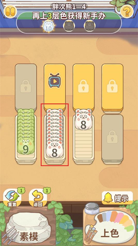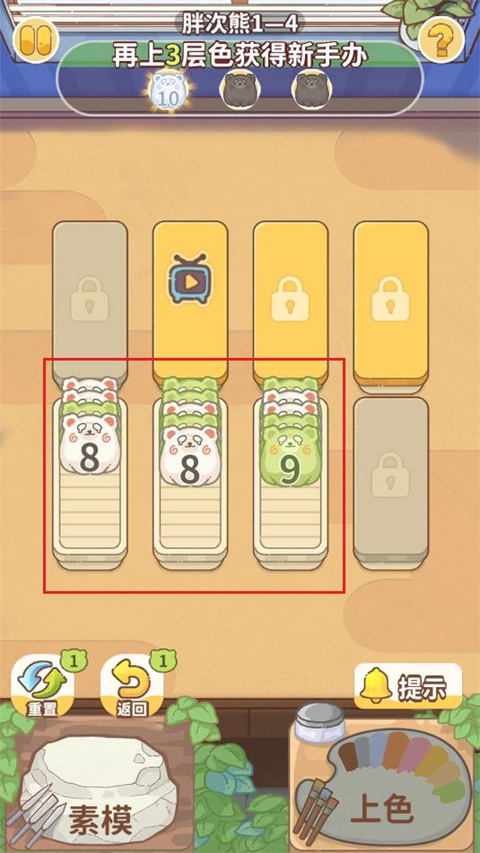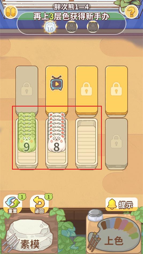 5、场上有已满的盒子,并且盒子内的手办一致,点击上色可以升级手办