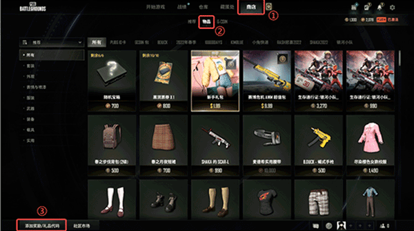 第一步:依次点击“商店"“物品""添加奖励/礼物代码”按钮
