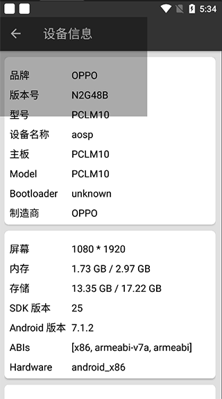 屏幕、RAM、ROM、SDK 版本、Android 版本、ABIS 等