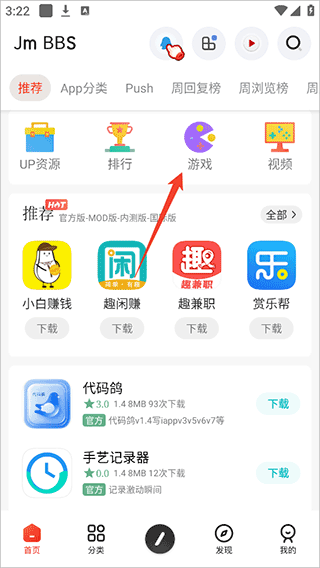 1、进入app后点击【游戏】