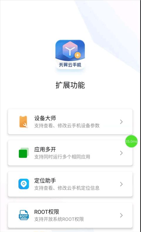 1、用户开启云手机免费使用或购买服务后可以在云手机的扩展功能页面中点击【root权限】功能进行root扩展工具的安装