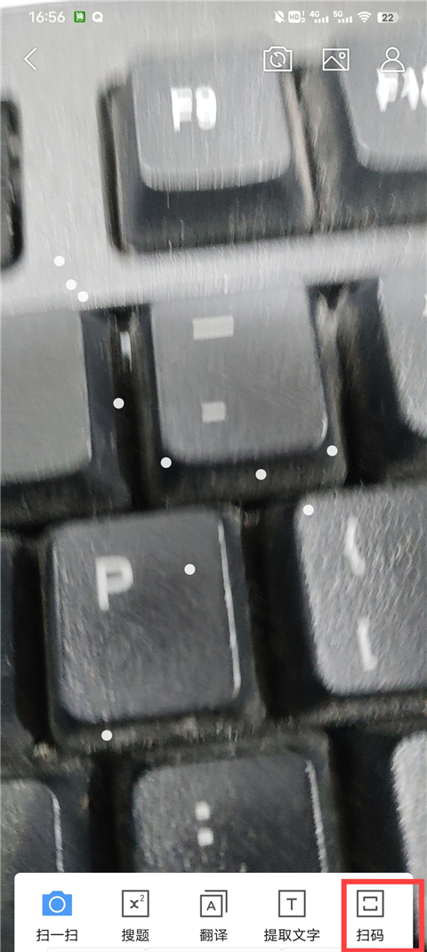 2、里面为用户提供了扫一扫、搜图、翻译、提取文字、扫码等等功能,我们点击扫码即可,