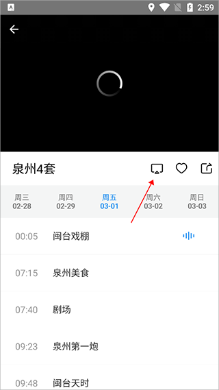 绑定成功后然后在观看时点击手机app播放页面中的投屏按钮即可完成投屏了(由于小编没有在福建广电服务网内,所以播放不了)