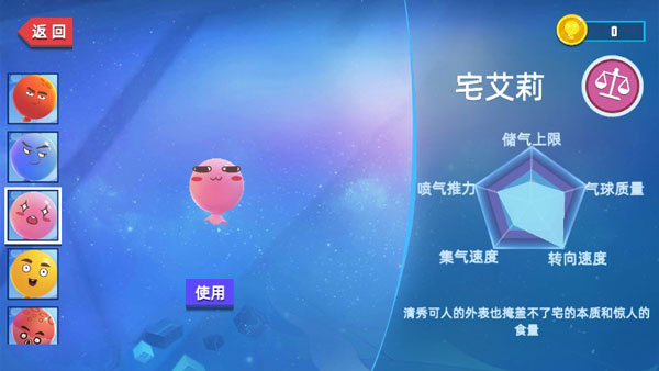 角色:这款游戏中玩家除了需要熟悉掌握魔性的玩法以外,Q萌可爱的角色也是大家喜爱的关键,包含许多不同形态角色,且每个角色在储气、质量、转向速度、集气速度和喷气助推等属性也各有差异,挑选你喜欢的角色迎接来自全球玩家的挑战吧!