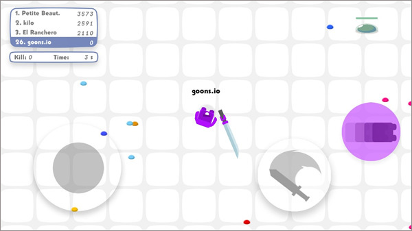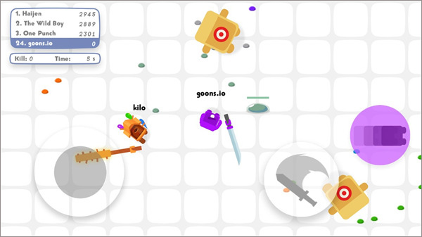 goons.io是一款多人在线io竞技类手游,中文翻译叫做暴徒io,该游戏整体画风简洁,排行一目了然,玩法模式比较非常简单,在这里玩家将以收集多彩颜色的水滴为主,并通过简单的掌控着方向键,挥砍和加速前进键,在遇到其他不同的角色时进行劈砍即可。整体来说游戏非常的简单有趣,比较考验玩家的灵活性,同时还有丰富的皮肤和武器等待你的到来和解锁,力荐给喜欢此风格游戏的玩家们,欢迎免费下载!