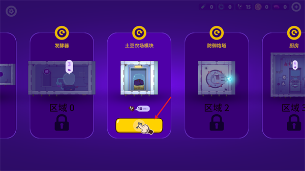 3、游戏分为了探索和建造两个部分,在基地内,我们可以挑选各种设施进行建设,选中后挑选绿色区域即可。