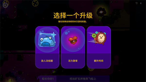 2、收集资源来不断扩展你的飞船,逐渐完善飞船上的各种设施,让你能够在外太空一直旅行下去。