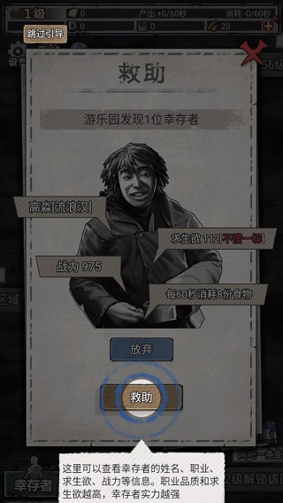这里可以查看幸存者的姓名、职业、求生欲、战力等信息。