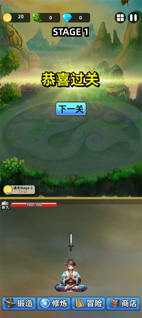 炼剑篇——闯关的话建议主培养一把剑,挂机的时候再往下培养,目前闯关剑的等级越高伤害越高,推关卡也就越强,如果休闲党的话可以均衡培养剩下的剑用来刷金币,慢慢玩