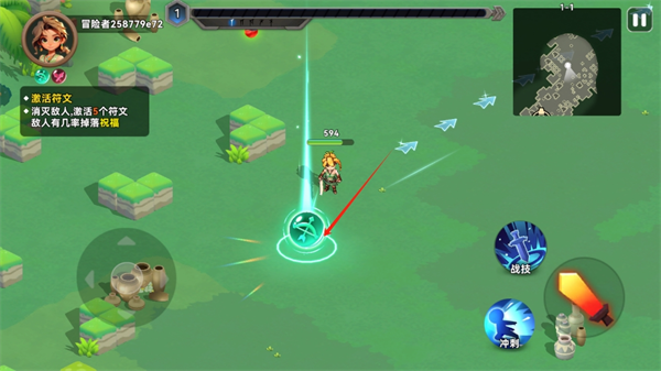 3、滑动左边的轮盘到敌人附近,点击右边的攻击和技能,干就完事了。