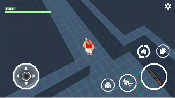 1、双击打开全民笑斗僵尸游戏,通过游戏左下角摇杆按钮来进行移动;