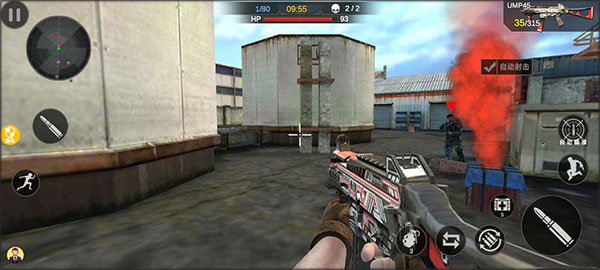 3、进入游戏后即可开始你的对决,左边控制人物移动,右边控制射击,玩法与手游cf相同,需要展现你强大的枪法来夺取胜利。