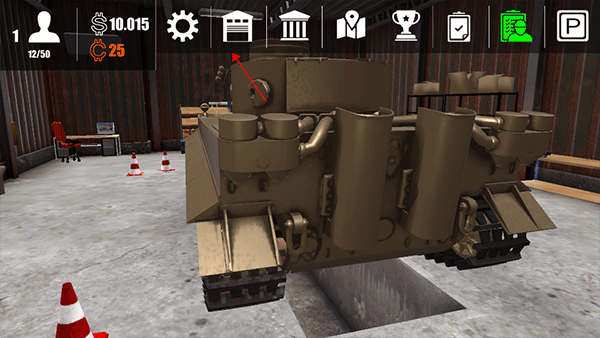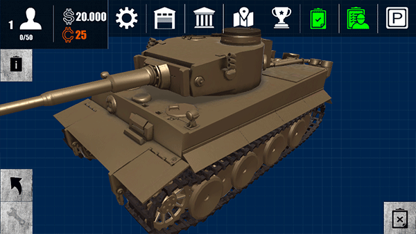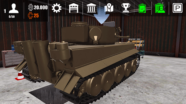 2、各种修理工具应有尽有,你能够操控自己的工具对每一款坦克进行修理的操作!