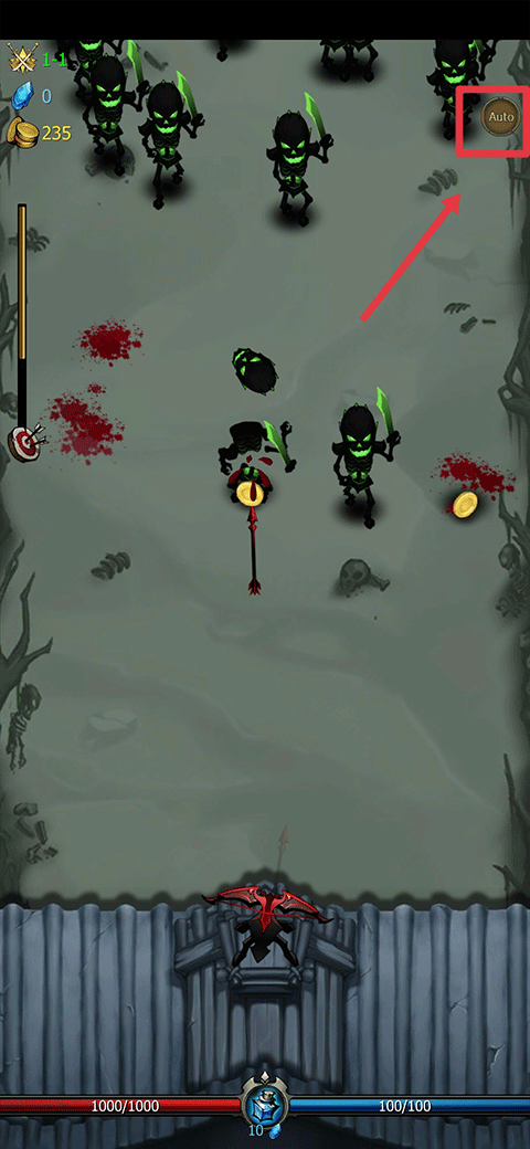 1、自动模式下的空闲防御,点击敌人以调整射击方向,或通过关闭自动模式手动控制