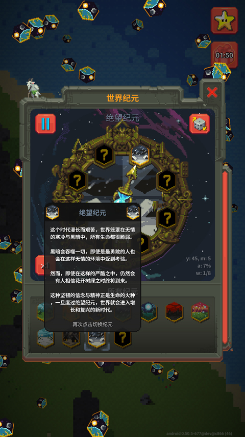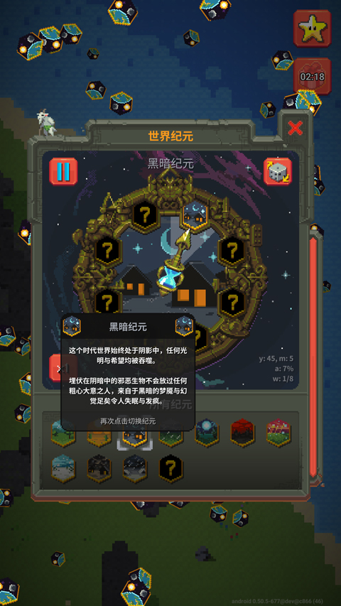 在worldbox游戏时,你能创建文明行为,正确引导它杰出或摧毁。