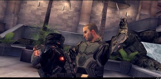 扔掉玩具之后继续前进,突破大门后突然冲出来一个敌人,两拳就将队长打倒在地(话说队长你反应慢点也就算了,体质还这么弱居然能当兵),之后又换刀来捅你,眼疾手快根据提示滑动屏幕将其打翻,这时队长跑过来十分淡定一刀解决了他。