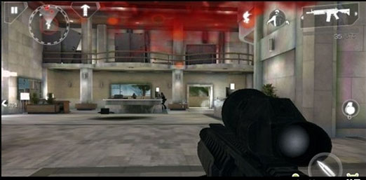 之后又是一段毫无新意的打靶练习,在屏幕上方有一个箭头按钮,你可以用赚到的钱给自己升级配件,改造你的武器等等。这点还是比较有意思的。
