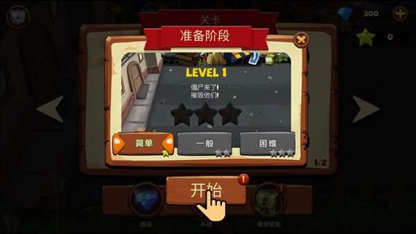 1、打开植物横扫僵尸手机版,点击开始游戏,选择游戏关卡;
