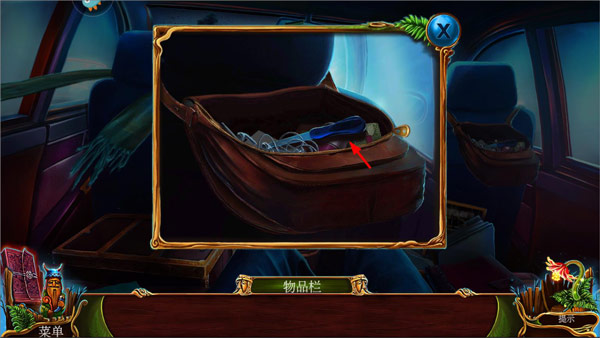 3、利用指甲锉打开副驾驶前面的盖子,找到宝箱钥匙;