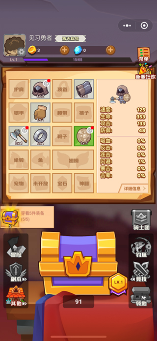 当你的装备越来越多时,右边的小人物也会随之加强