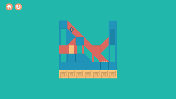 1、游戏会给到玩家三个平面,中间部分平面是残缺的一个正方形,玩家需要在两边的平面上根据中间平面上残缺的图形填充方块。