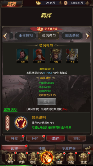 3、海量的武将选择与养成:游戏提供了数十种各具特色的武将供玩家选择,每个武将都有自己独特的技能和属性。玩家可以通过养成系统,提升武将的等级、技能和装备,使其更加强大。同时,游戏还提供了丰富的副本和任务,让玩家在挑战中不断成长。