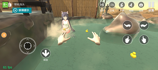 5、等到小忍进入浴缸后你就可以进去卫生间帮她洗头了,根据指示拍她的头完成沐浴,气泡计会随着你的互动进度增长。
