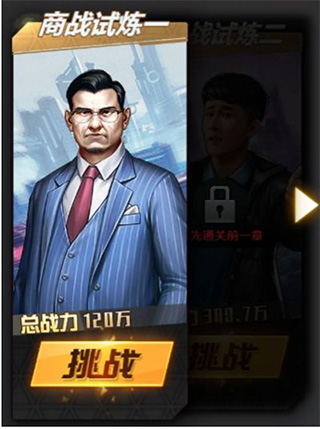 2、每章商战试炼,玩家需要击败多个BOSS才能通关,击败每个BOSS均可获得试炼币,首次击败会有额外奖励,全部击败后通关一章试炼,更可获得钻石、人才卡等珍稀奖励,同时会自动解锁下一关卡。试炼币可用来兑换奖励道具。