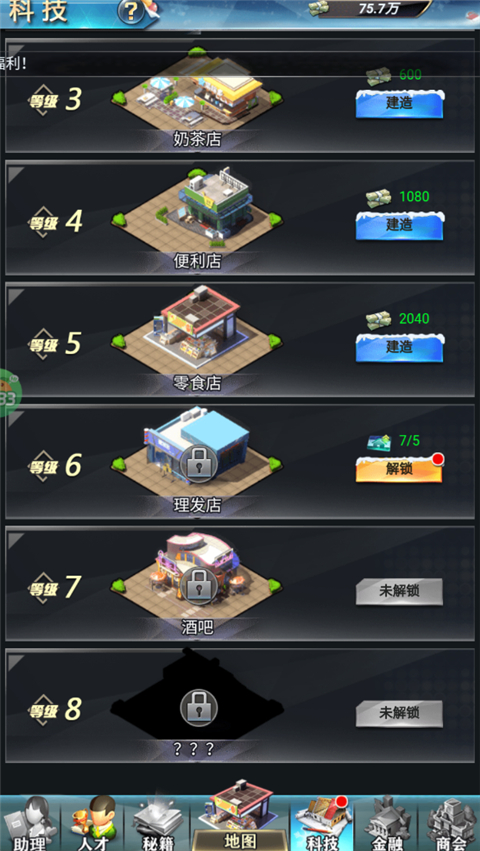3、还可以解锁更多的店铺,从而扩大你的商业帝国;