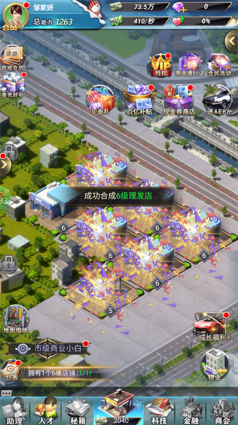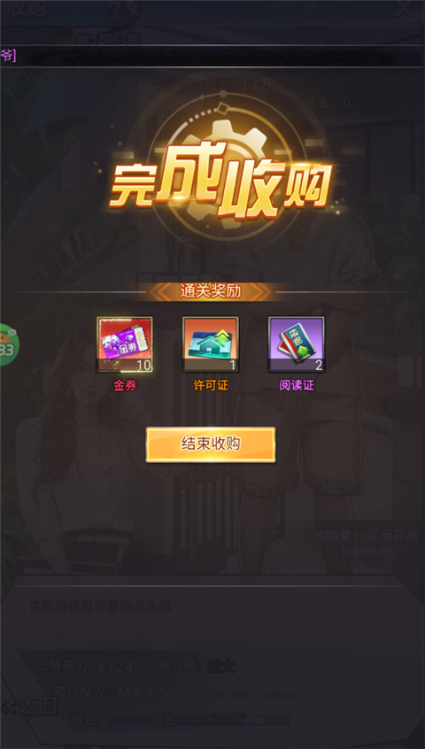 4、商业对决:参与商业对决、金融博弈以及高端宴会等多种策略玩法,获取关键道具,增强人才技能和建筑级别。