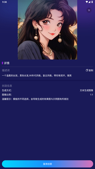 2、进入后可以看到图片详情,点击复用创意;