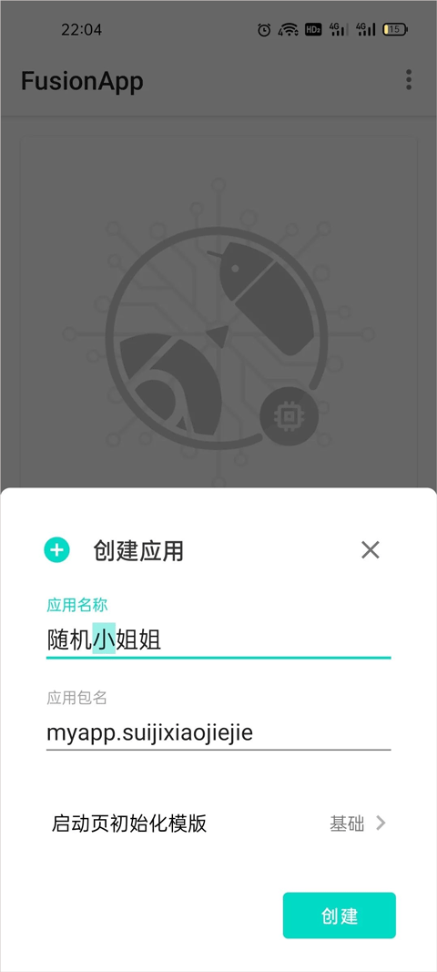 创建应用,名称自定义,包名自己定也可以随机,启动页模板随便选一个,一会我们会自己制作布局!!