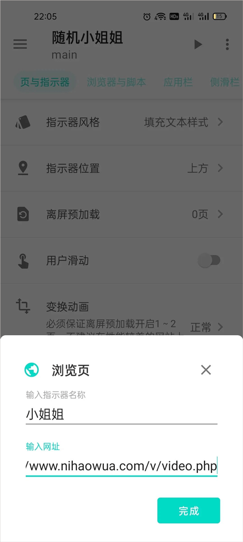 进入创建好的应用中添加浏览页,添加好网址信息与指示器名称!指示器名称可以自己随便这一个!