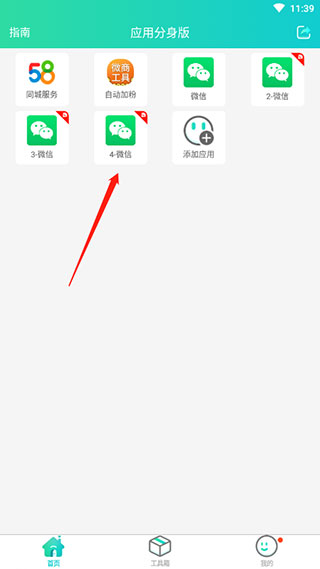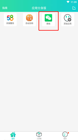 1、下载安装微信分身版安卓最新版官方版,运行软件,在首页有个添加应用,我们点击它;