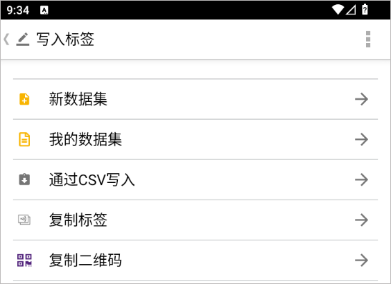 2、在写入标签界面下,我们可以进行数据集新建、我的数据集管理、复制标签、复制二维码等一系列操作。