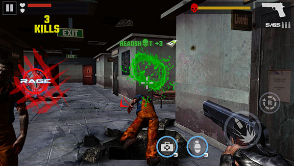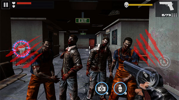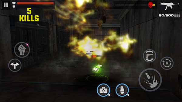 游戏特色包括恐怖的氛围、巨大的场景地图、丰富的关卡设计和多种武器选择。操作方面,滑动屏幕可以调整视角,点击攻击键就能开枪打僵尸。通关后还能解锁新武器,或者购买更强大的武器来闯关。手雷的存在更是让战斗变得简单暴力,全屏秒杀的感觉太爽了。