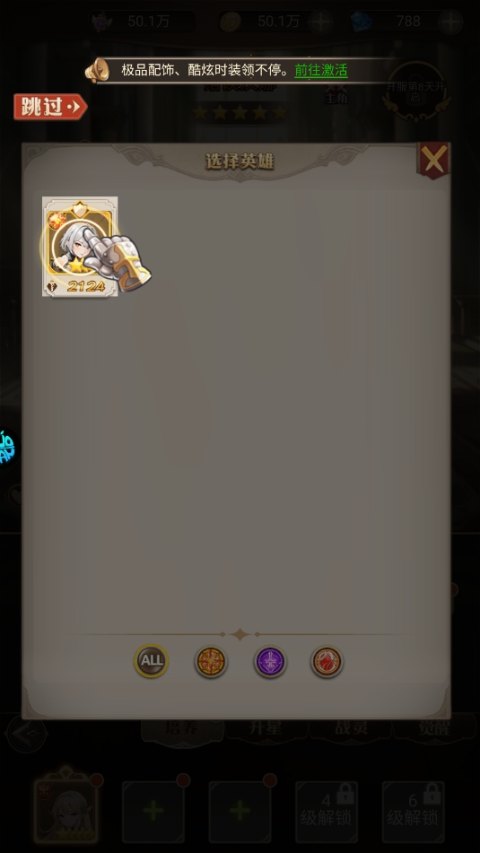 3、然后把招募的英雄加入到自己的队伍,提升英雄等级、穿戴装备可增加属性;