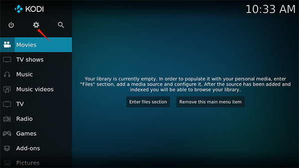 1、打开kodi播放器手机汉化版,进入主界面后选择左上方中间的齿轮
