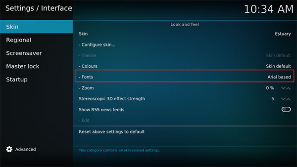 3、然后点击“Skin”在Fonts中选择Arial based字体。