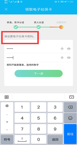 3、输入电子社保卡密码后,点击完成,然后就可以查看个人社保信息了。